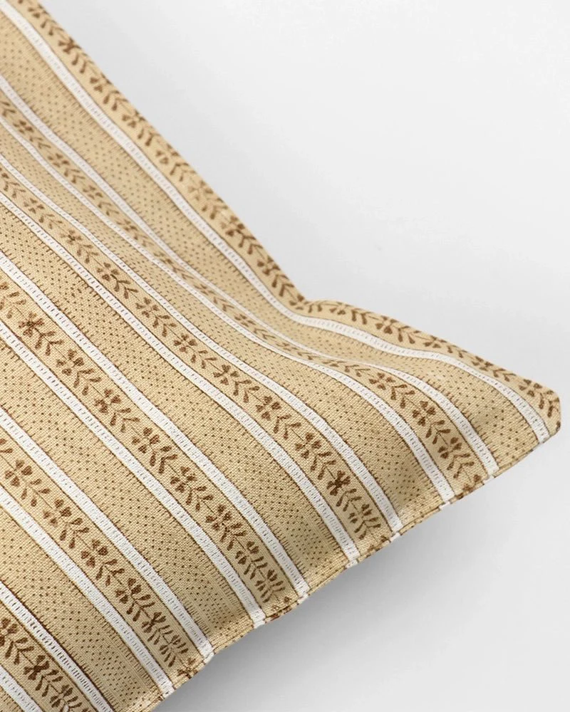 Introduce some warmth and character into your living space with our Callier Block Print Ruffled Pillow Cover. The amber hue and striped block print pattern add a touch of authenticity and style, paying homage to the traditional techniques of India.