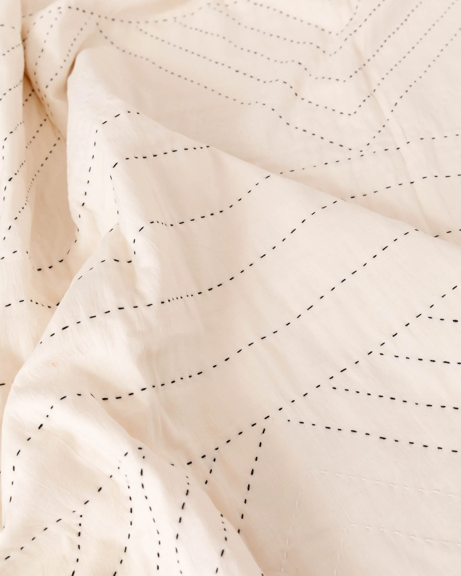 This hand-stitched quilt blends traditional kantha stitching techniques and modern design. Made with organic cotton, our Crescent Lattice quilted throw features a circular geometric composition with a neutral, but bold color palette. Drape it over any sofa or bed to add an artistic, modern look to your home.