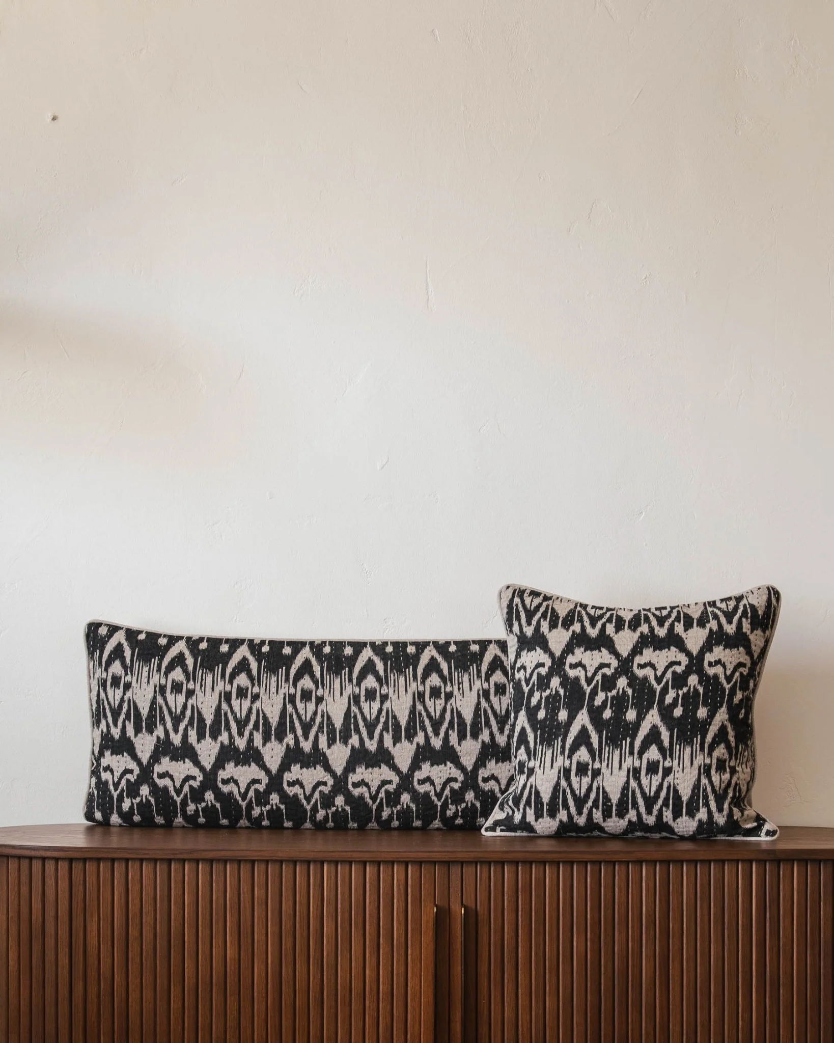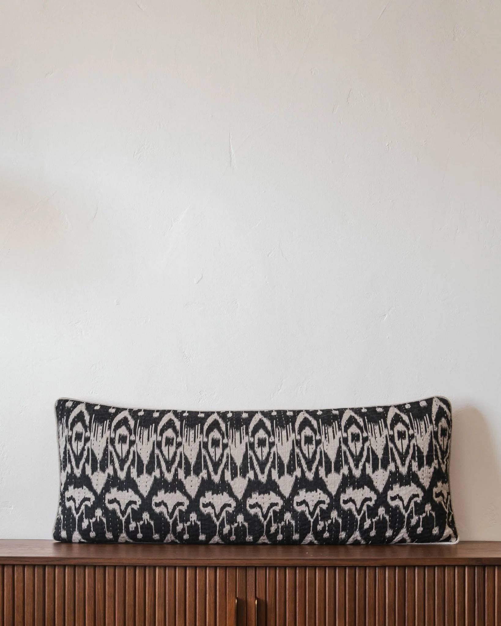Bring bold pattern and modern texture to your living space with the Dillon Quilted Linen Ikat Pillow Cover. Crafted of linen with a bold ikat pattern and luxurious quilted texture, this pillow cover features eye-catching piping that adds a creative twist.