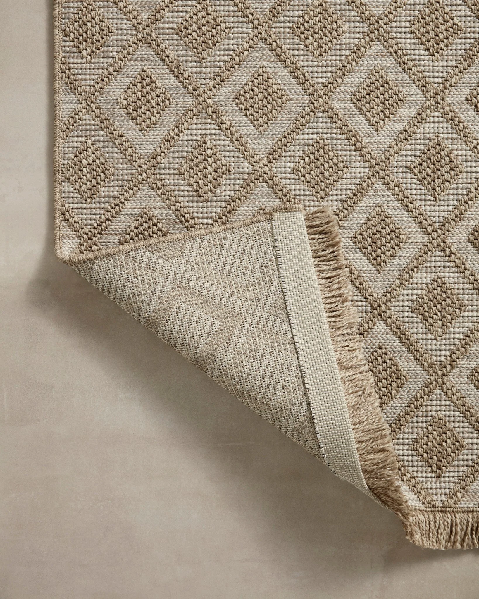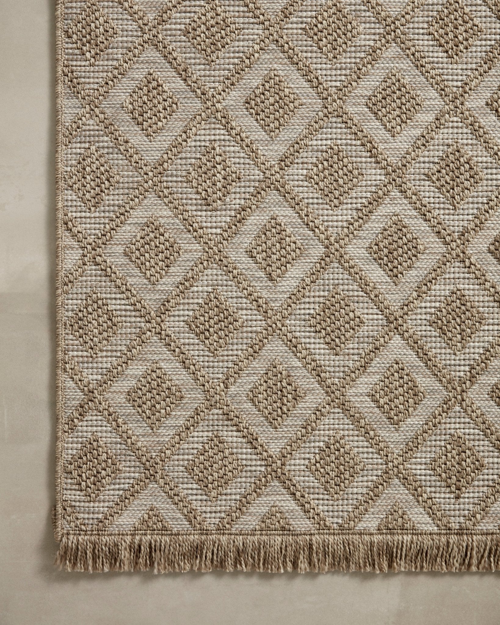 Made for sunny days ahead, the Dawn Collection is an indoor/outdoor rug that looks like a woven sisal rug but is power-loomed of 100% polypropylene, which makes it water- and mildew-resistant (so it's ready for rainy days ahead, too). Available in modern graphic patterns in tonal beige neutrals, Dawn has a short edge fringe that adds a playful and elevated feel to a rug that can handle a lot of foot (or paw) traffic whether outside on a patio or in a busy mudroom. Rinse off with a hose when needed.
