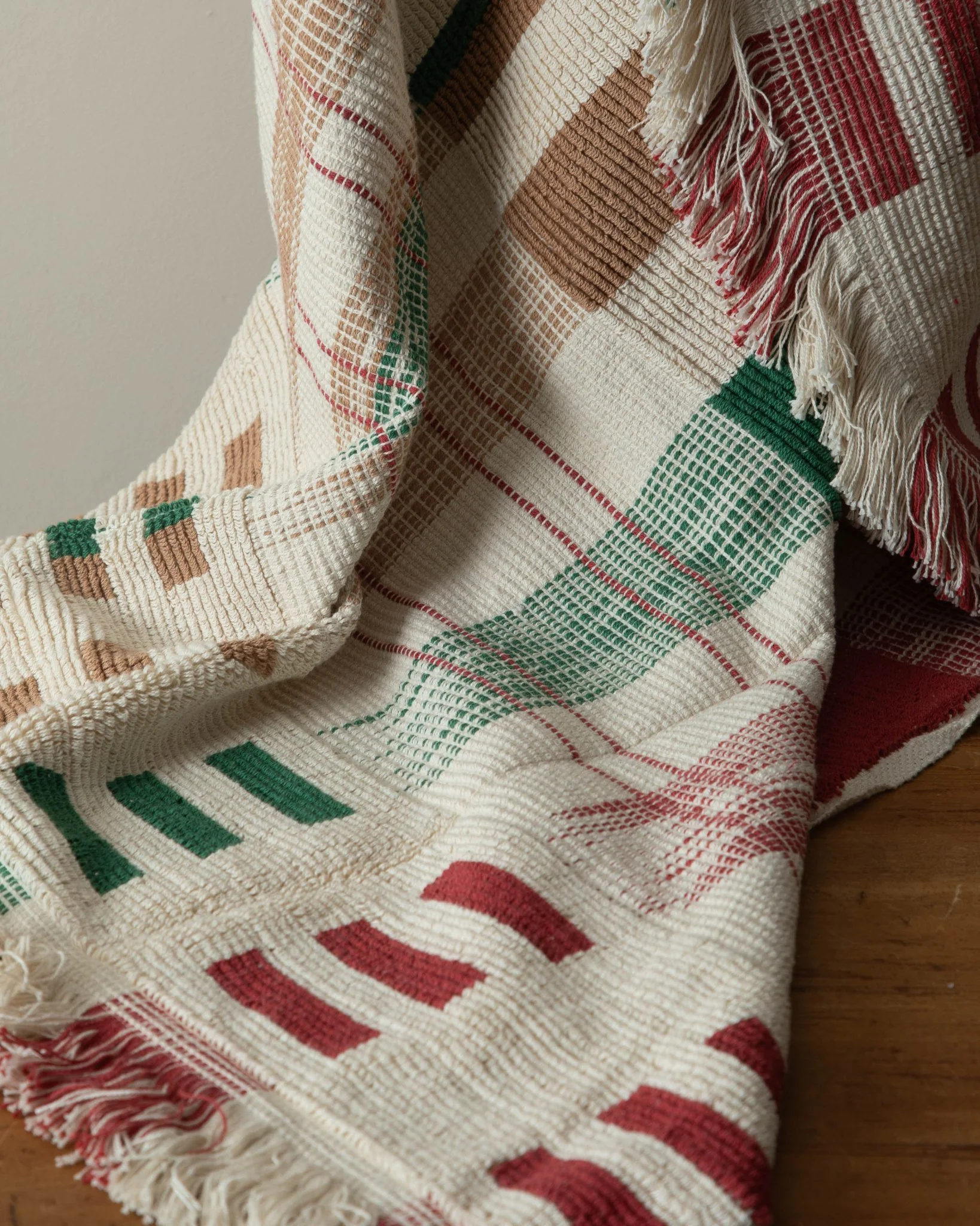 Perfect for hanging over any couch, or for cuddling up in. The holiday tones are ideal for the season but can also be used year round. This throw features varied textures for added interest and is overall a heavy quality piece.