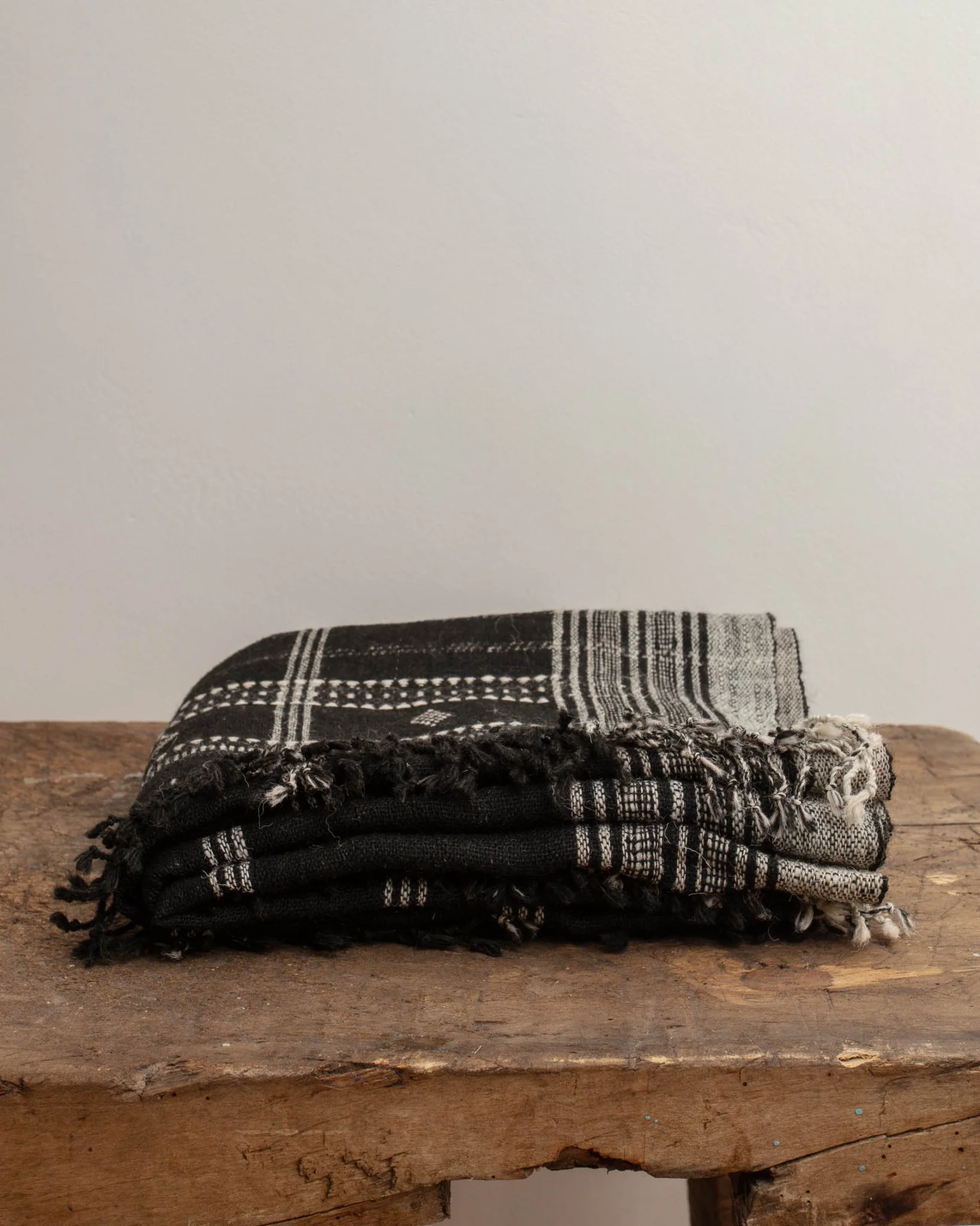 Selected for their detailed craftsmanship and elevated design, these bedcovers/throws are woven with local sheep and goat wool by traditional weavers in rural northern India.